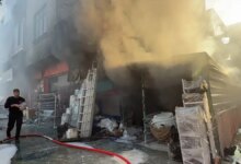 Mersin’in Toroslar ilçesinde yapı malzemeleri satan dükkanda çıkan yangın söndürüldü.